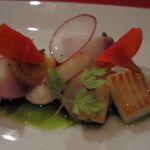 The dining area is more like a sushi bar than a dining room, with bar seating wrapped around a miniature, open kitchen that sits center-stage. So, for those who get all warm and fuzzy at the idea of getting a behind-the-scenes peak at a restaurant's kitchen, Degustation puts the whole production on display. Not to mention, this arrangement puts the rather cute executive chef, Wesley Genovart, on display as well. Feel free to stare.