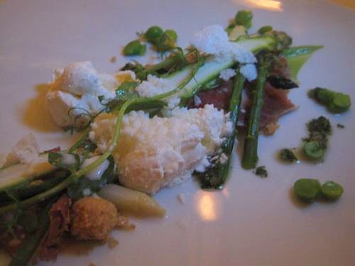 The best meal of my life, the best dish of the meal: “Spring out of Winter” was the ultimate expression of contrast and balance in every aspect of the plate. Variations of asparagus were served alongside delicate pea shoots and baby peas, Jamon Iberico, shards of dehydrated almond milk, and creme fraiche ice cream (frozen by liquid nitrogen). The concept of creating a dish that embodies the differences of Winter and Spring was executed through the plays on contrast: simple, fresh flavors highlighted through complicated technique, warm and cold elements, plays on creamy and crunchy textures, and salty, savory flavors combined with the slight sweetness of ice cream. Imaginative, seasonally appropriate, technically challenging, beautiful, and delicious, this was truly a masterpiece of a dish. To read more about that dinner, check out my full account of that night at Eleven Madison Park.